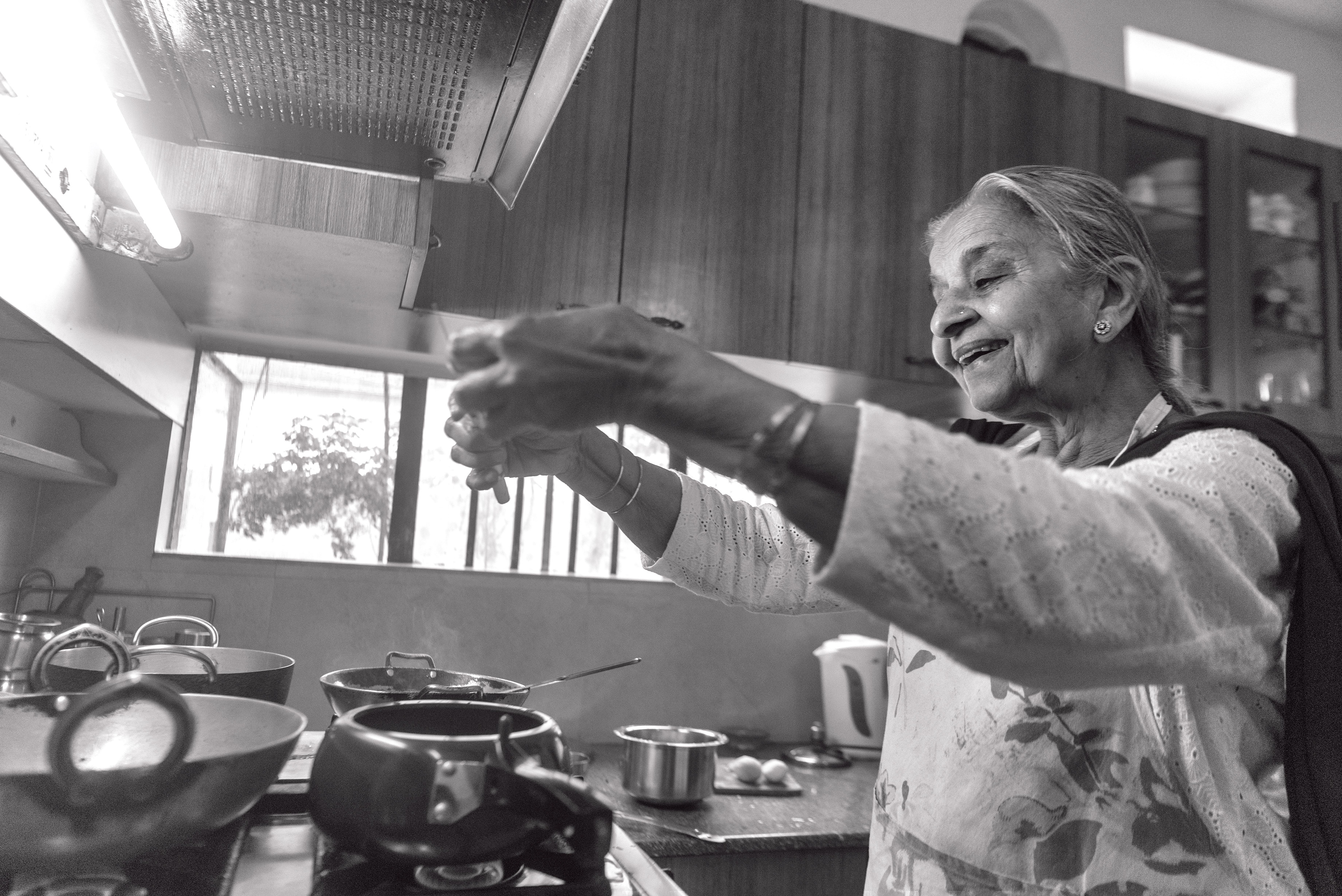 “We all ate together, from the very beginning, thankfully we always got good and simple house staff to help aswell”, Sneh Lata tells me as she serves me gram flour pancakes .