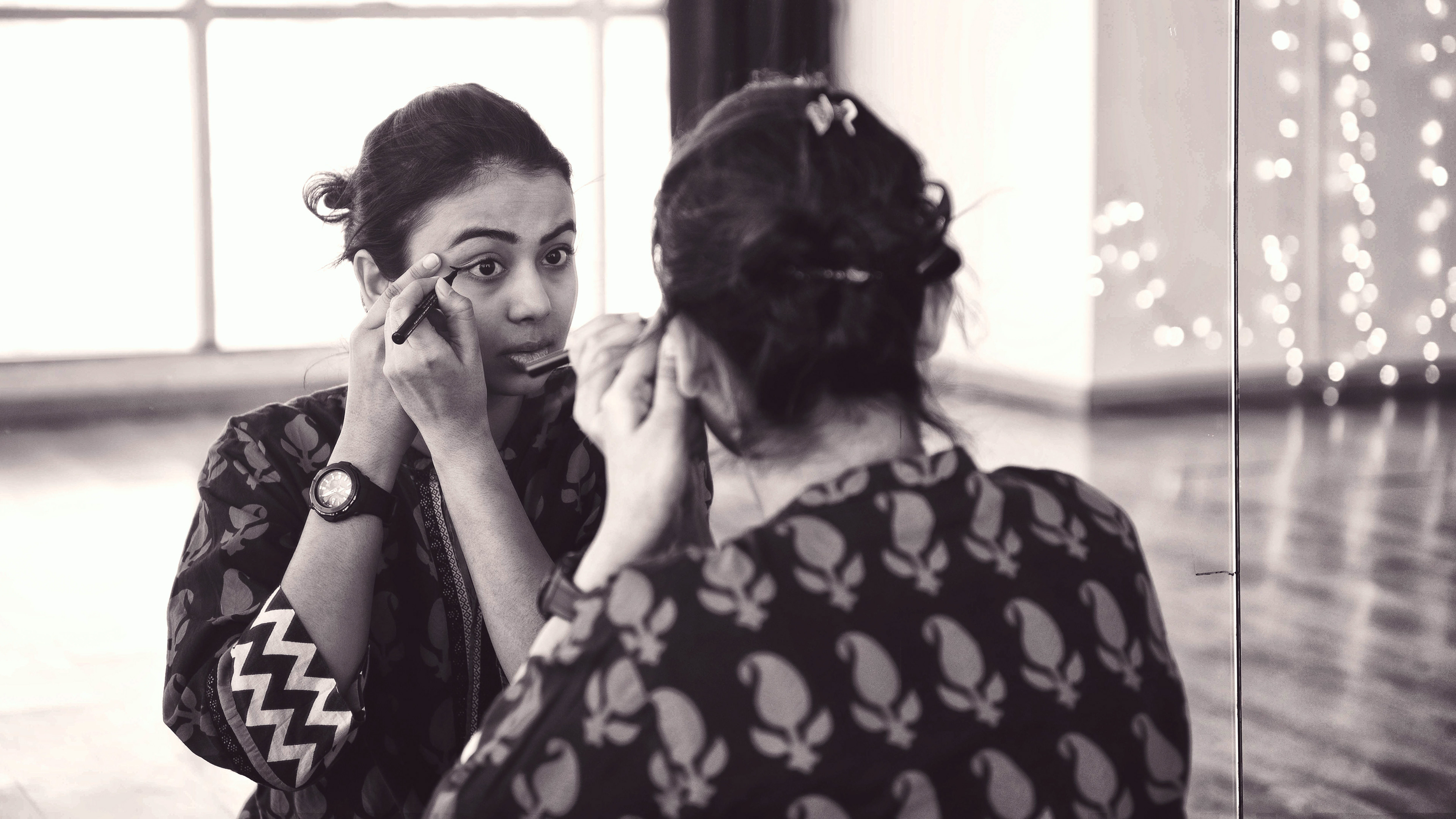 The mirror reflects the magnanimity of the character they are about to play for the day.