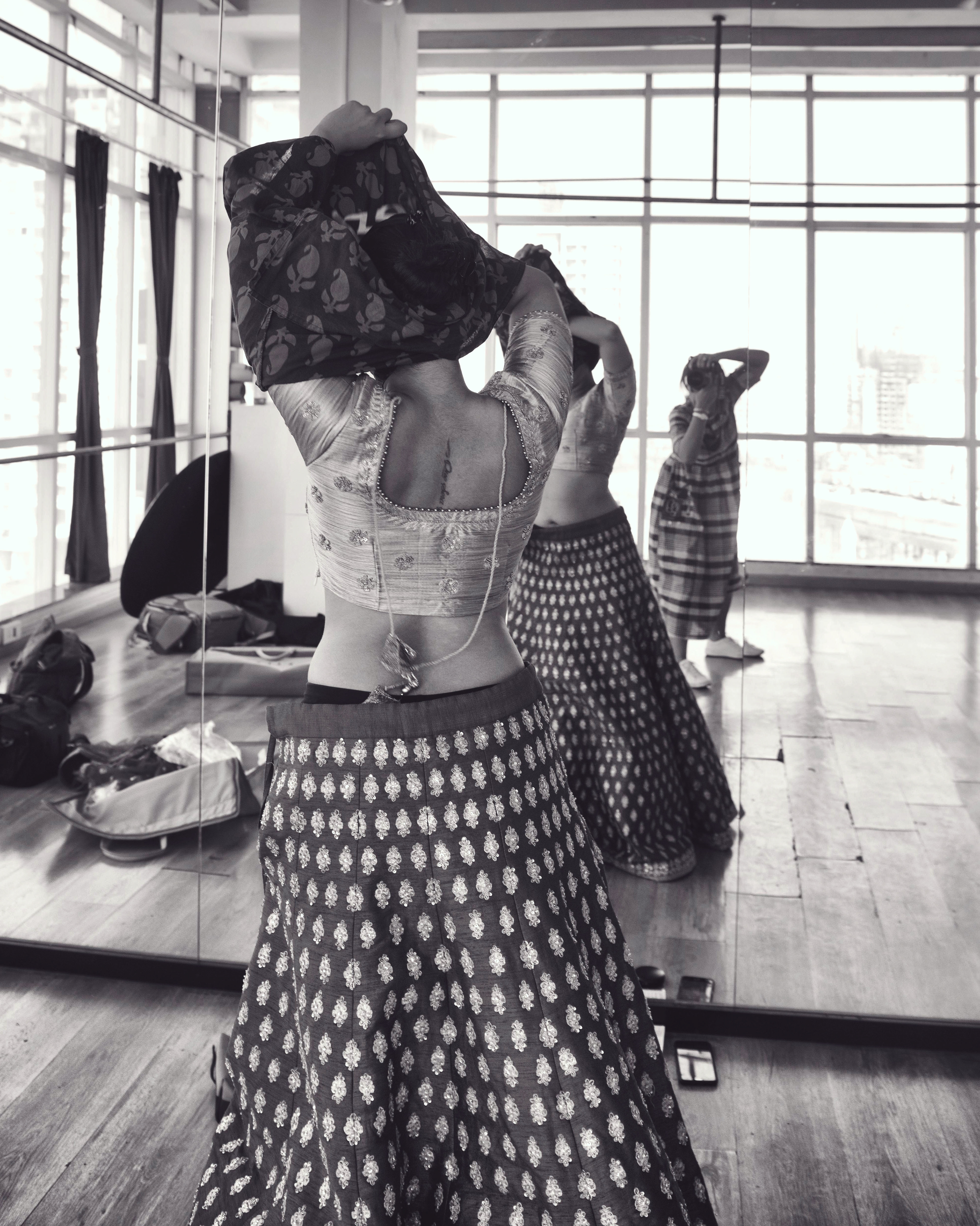 The printed tattoo talks about the impermanence of various characters they play and the permanence of their love for it.